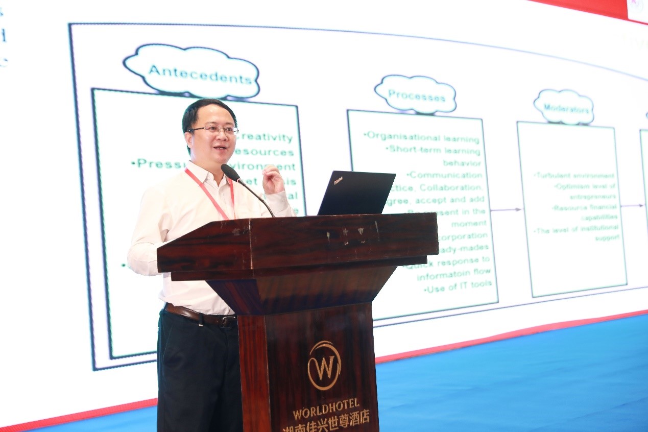 )教授陈衍泰作了题为“动态能力演化研究的多元视角及整合框架——基于组织惯例、企业家精神和即兴能力三视角”的主旨报告。他指出,当前创新活动发生了跨界融合的出现、新产品迭代速度快、产品的智能和链接特征等较大变化,更加注重数据驱动的发展模式。因此,陈校长基于“大数据属性”与动态能力前因互动的基本逻辑,从动态能力的组织惯例、企业家精神和即兴能力三个视角重点研究基于数据驱动的企业动态能力构成与发展的过程规律及内在机制。