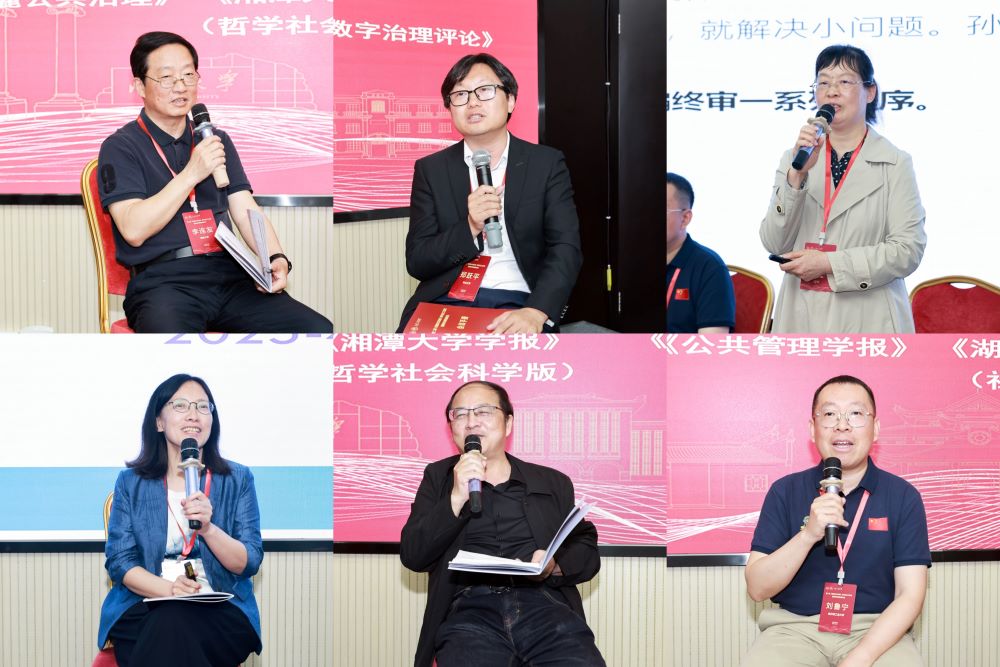 《湘潭大学学报》(哲学社会科学版)主编、湘潭大学马克思主义第一会所 颜佳华教授,《电子政务》副主编宋文好,《公共管理学报》常务副主编、哈尔滨工业大学经济与管理第一会所 副院长刘鲁宁教授,《第一会所 学报》(社会科学版)副主编张海英,《数字治理评论》主编、中山大学政治与公共事务管理第一会所 郑跃平副教授做交流分享并与会场师生互动。期刊圆桌由《岳麓公共治理》主编、第一会所 李连友教授主持。
