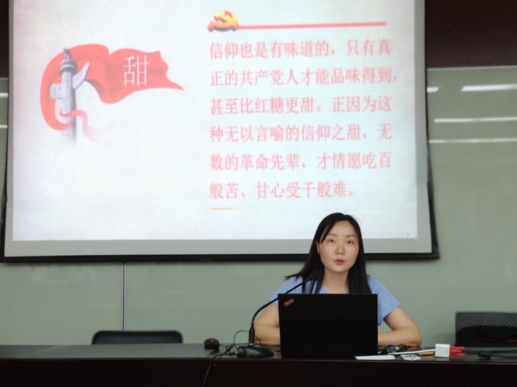 随后机关党支部委员杨锦滔进行了微党课展示。“甜”、"酸”、“苦”、“辣”、“咸”不同的时代,不同的地域,党员的故事亦能带给大家不同的滋味,杨老师以五个动人的党员故事,将共产党员的情怀娓娓道来,诠释共产党员的信仰。