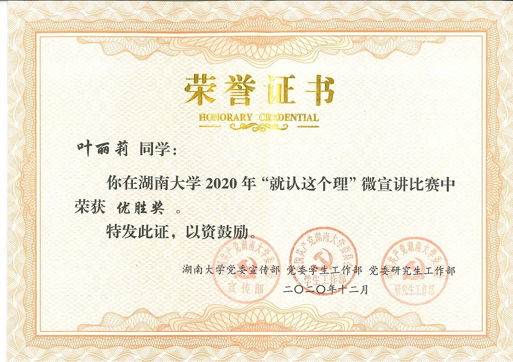 2020级公共管理硕士班研究生叶丽莉获优胜奖。