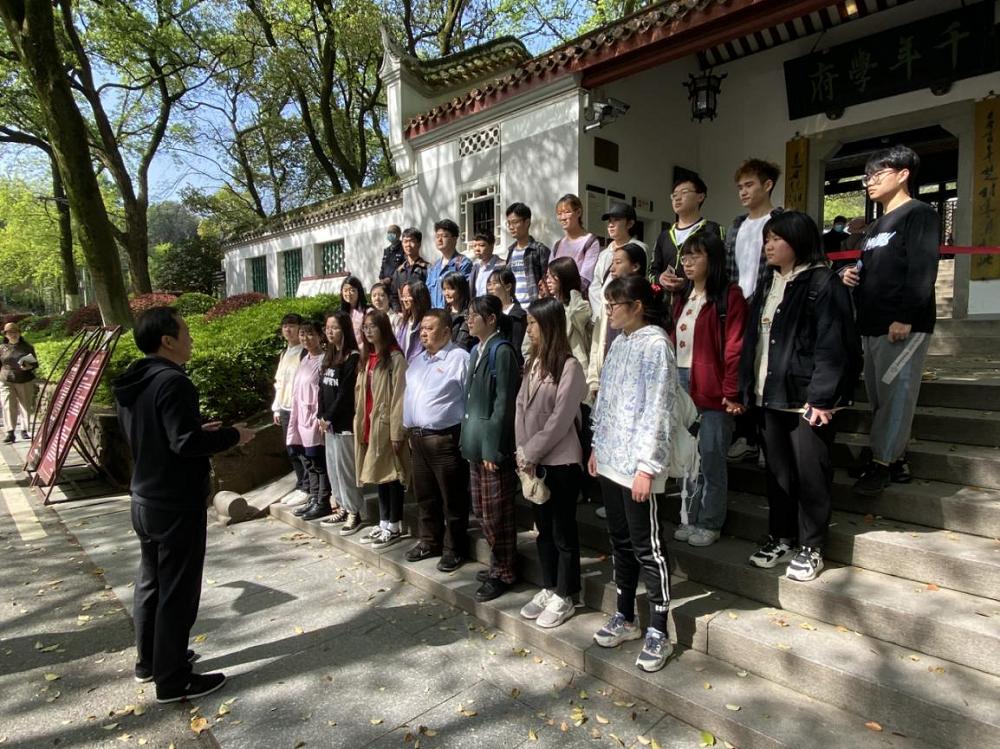 的人文风采。 在“是非审之于己,毁誉听之于人,得失安之于数,陟岳麓峰头,朗月清风,太极悠然可会;君亲恩何以酬,民物命何以立,圣贤道何以传,登赫曦台上,衡云湘水,斯文定有攸归”的对联前,汪建武老师为同学们逐字逐句的讲解了对联的含义。最后汪建武老师借用习近平总书记的话勉励大家不负青春、不负韶华、不负时代,珍惜时光好好学习、走好人生之路。