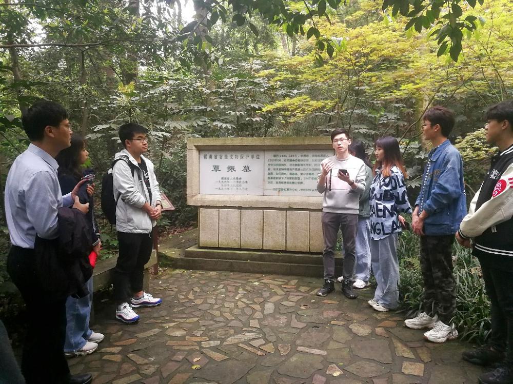 接着,两支部先后到达了蒋翊武墓、蔡锷墓与黄兴墓,分别由本科生党支部周辉宇同学、王琦珑同学与张肖肖同学介绍了三位革命先辈的光荣事迹。三位同学从人物生平出发,结合自己的体悟,在让老师、同学们加深对三位先辈认识的同时,表达了对其崇敬景仰之情。闫振振老师、李婷婷老师也对三位同学的讲解做出了点评。闫振振老师提到,作为第一会所 的学生,我们应该坚定不移地继承和发扬以爱国主义为核心的民族精神,以自身所学服务社会、服务国家,做到求是为公,经世致用。李婷婷老师也讲道:“处于中国共产党成立100周年的背景下,又适逢清明节这一时间点,这次主题教育活动让党员同志们加深了对革命先辈的认识,同时瞻仰其体现的红色精神,这使得我们的结对共建十分有意义。”