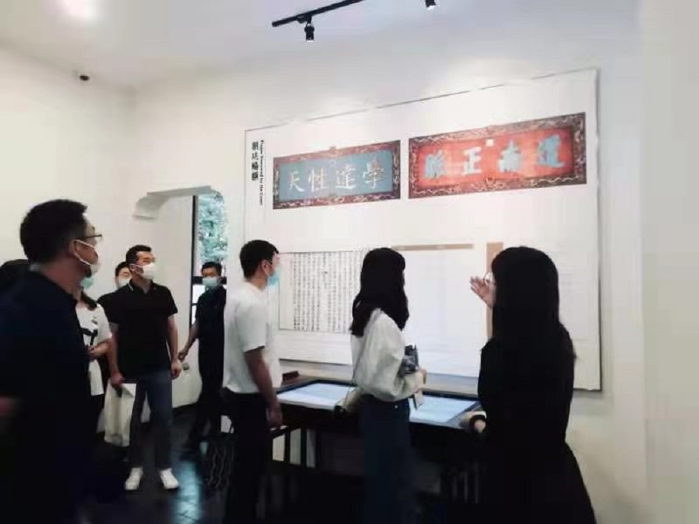 随后,林男同志带领支部党员于岳麓书院前门、赫曦台、研究成果展板处、书院大门、皂荚树前、书院讲堂、书院陈列馆、中国书院博物馆等地进行学习,并向大家介绍了总书记考察调研时的情形以及岳麓书院与党的实事求是思想路线的联系。