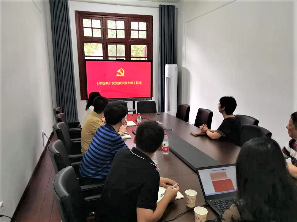 关于学习《中国共产党党徽党旗条例》的相关要求,与会同志一同观看了省委组织部党员管理处指导制作的《中国共产党党徽党旗条例》解读视频。