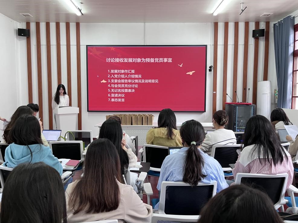 此次党员大会成功接收黄诗瑶等四名发展对象为预备党员,实现了硕士研究生第一党支部的组织发展,为支部的建设和工作的展开增添了新力量。