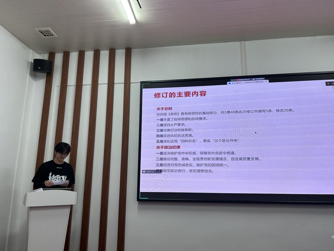 5月28日,支部组织全体党员学习了相关党纪文件精神,宣传委员闫振振带领与会党员逐条研读《条例》,并选用案例深化党员对政治纪律等方面内容的理解。