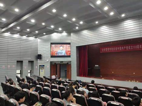 党委组织师生党员、入党积极分子,团委学生会研究生会各部门在法学楼报告厅、北校区水教203教室共计两个场次集中收听收看庆祝中国共产党成立100周年大会现场直播,并组织召开座谈会。