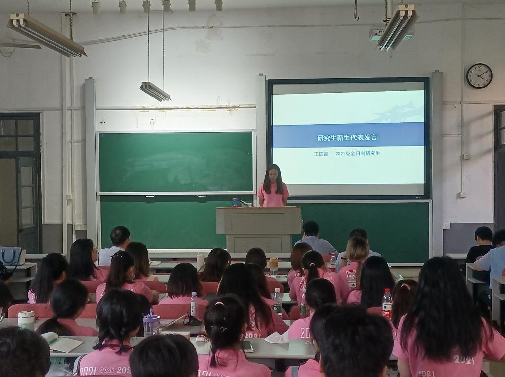 2021级全日制研究生王钰霞代表2021级研究生新生进行发言,以第一会所