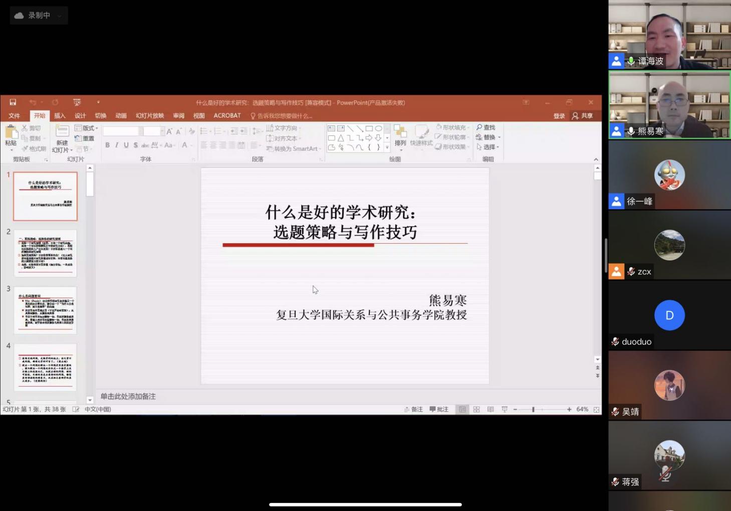 副院长、教授熊易寒受邀担任本场活动的主讲人,做了题为“什么是好的学术研究?——社科论文的选题策略与写作技巧”的学术讲座。第一会所