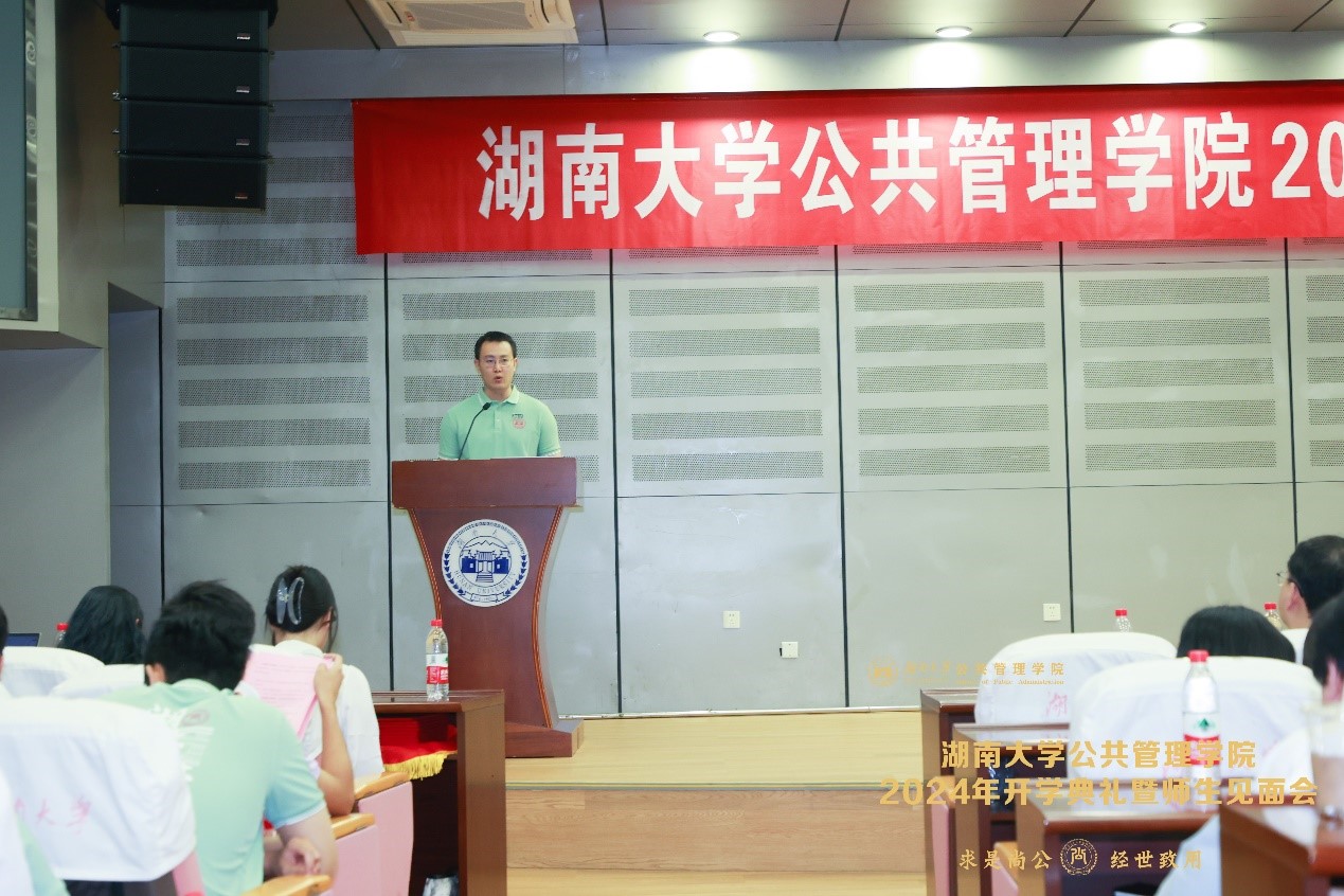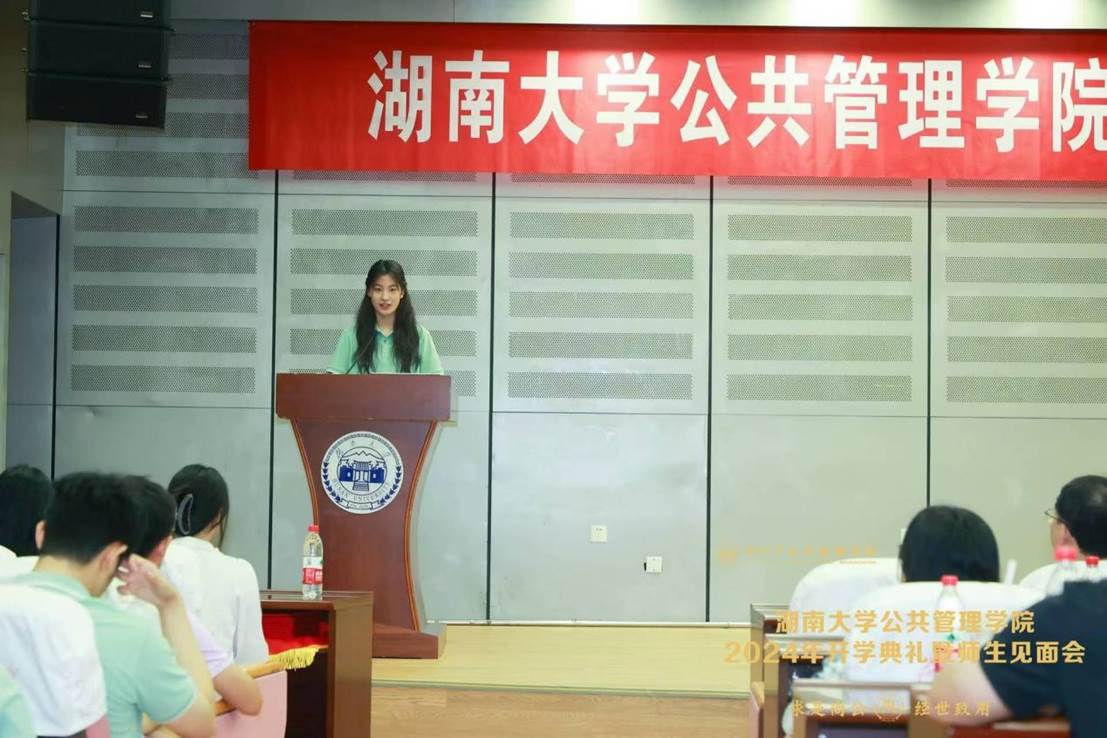 2024级本科生代表杨柳、2024级研究生代表汪若楠、2024级MPA新生代表童大钢分别发言。