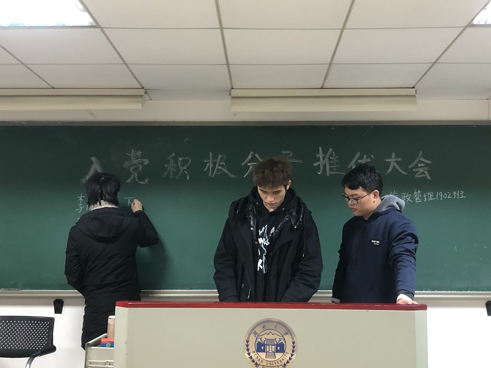 入党推优工作,为党的发展注入新鲜血液和力量,3月8日,行政管理1902团支部在综合楼408教室召开入党推优会。会议由团支书李宏圳同学主持,团委组织部干事方佳辉同学全程监督,行政管理1902团支部全体同学参加会议。