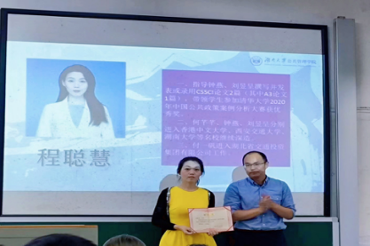 副院长徐莹老师和党委副书记杜倩博老师颁发荣誉证书,并号召大家向其学习。作为导师代表,程聪慧老师向同学们提出了三点建议:付诸于具体行动,做应该做的事;成为自己,善待他人,包容自己与他人的差异;保持健康,相信未来,感受世间美好。