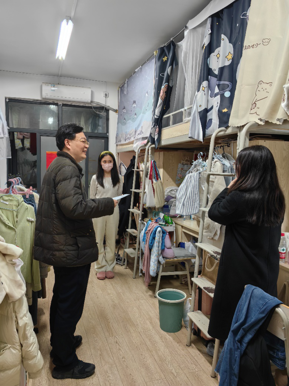 为进一步提高广大学生安全意识和自防自救能力,坚决防范和遏制火灾事故发生,根据第一会所 有关通知要求,第一会所 党委副书记杜倩博、辅导员胡春晖、班主任毛劲歌与伍雪骏老师于3月17日晚带队开展学生宿舍安全检查,针对寝室消防安全、出行安全、防范电信诈骗、食品安全等向同学们进行宣传教育,提示同学们提高警惕,时刻绷紧安全弦。