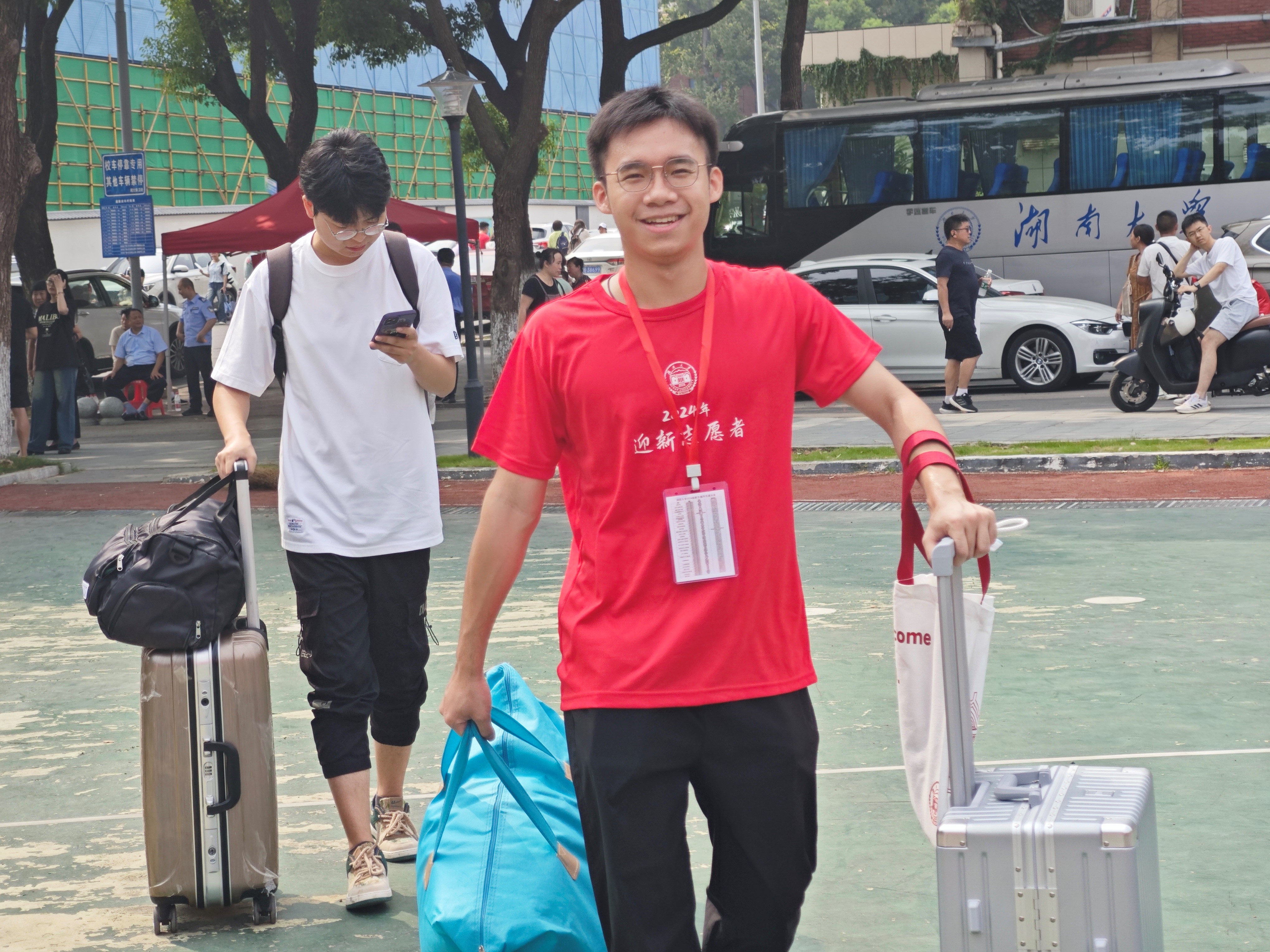 9月3日,迎新工作正式开始。各位迎新志愿者一对一对接新同学,帮助他们完成报到流程、搬运行李,耐心解答各种疑问,确保每位新生都顺利报道。