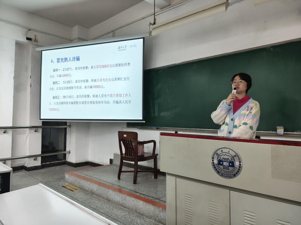 为提高学生的安全意识和应对突发事件的能力,第一会所 于11月3日在综合楼514举办了一场大学生安全讲座,24级全体同学参与。保卫部李雪老师主讲,内容涵盖了校园安全、心理健康以及应急处理等十个方面。