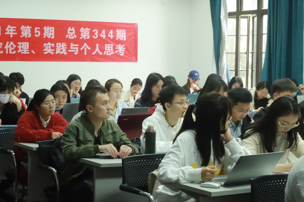 活动最后,吴高鹏、陈雪莹、丛宏彬等同学就本次活动主题提出自己的疑问,他们分别提出实证调查研究中如果存在被调查者故意隐藏自己真实想法的情况怎么办、在调查研究中进行录音而未告知被调查者这属于违反学术道德吗以及如何对精神慰藉等主观性较强的研究领域进行量化研究等问题。周蔚老师为同学们一一进行解答。通过本次博士创新论坛,同学们对于学术研究中的伦理问题有了更为深入的了解,也对学术研究中的伦理边界有了更为清晰的认知。