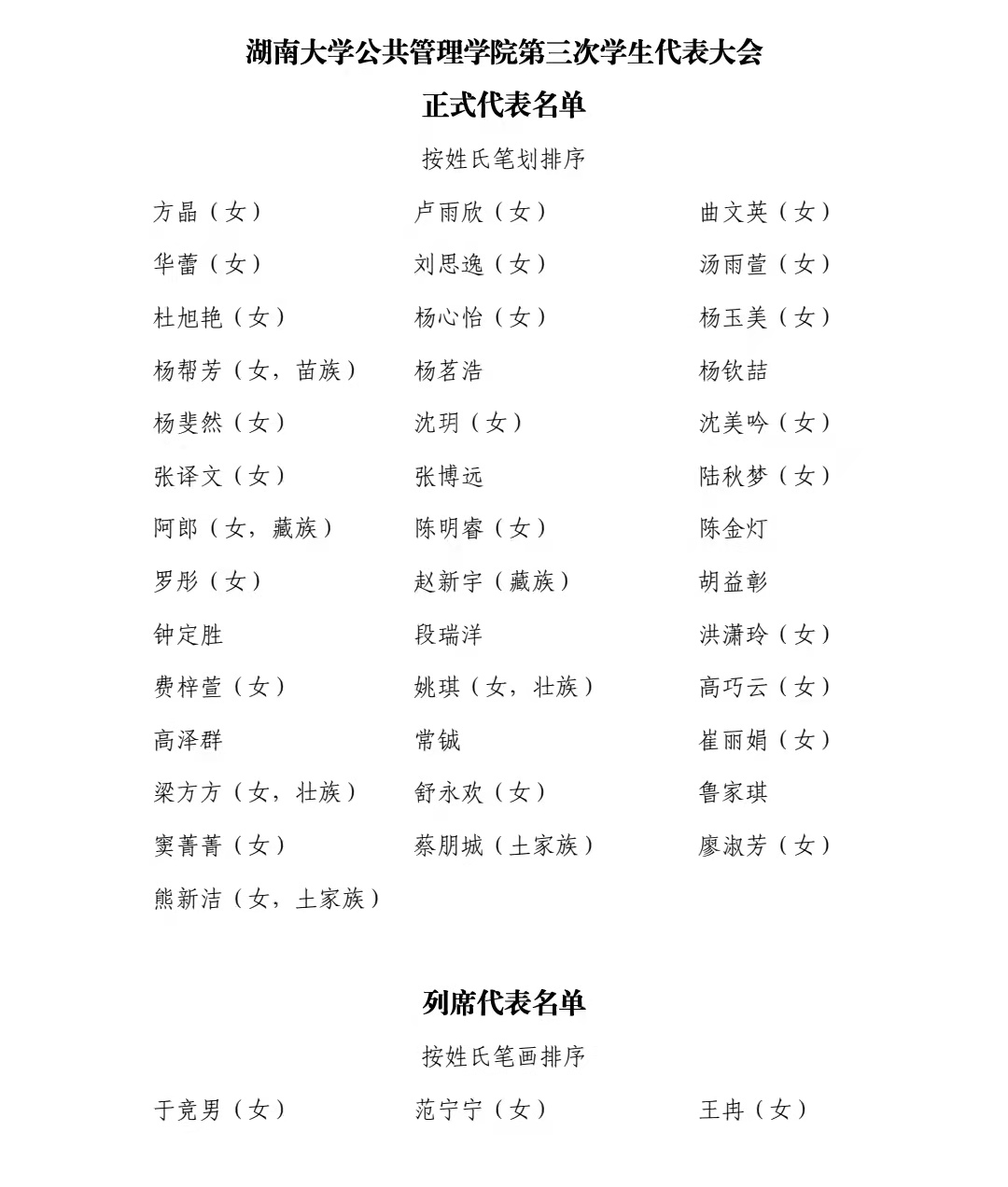 依据《第一会所 第三次学生代表大会代表产生办法》等文件,在各班级团支部及挂靠第一会所 社团具体负责下,经名额分配、酝酿推荐、预选、选举合资格审查,现将第一会所 第三次学生代表大会代表名单公示如下: