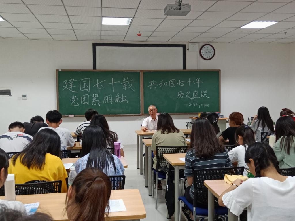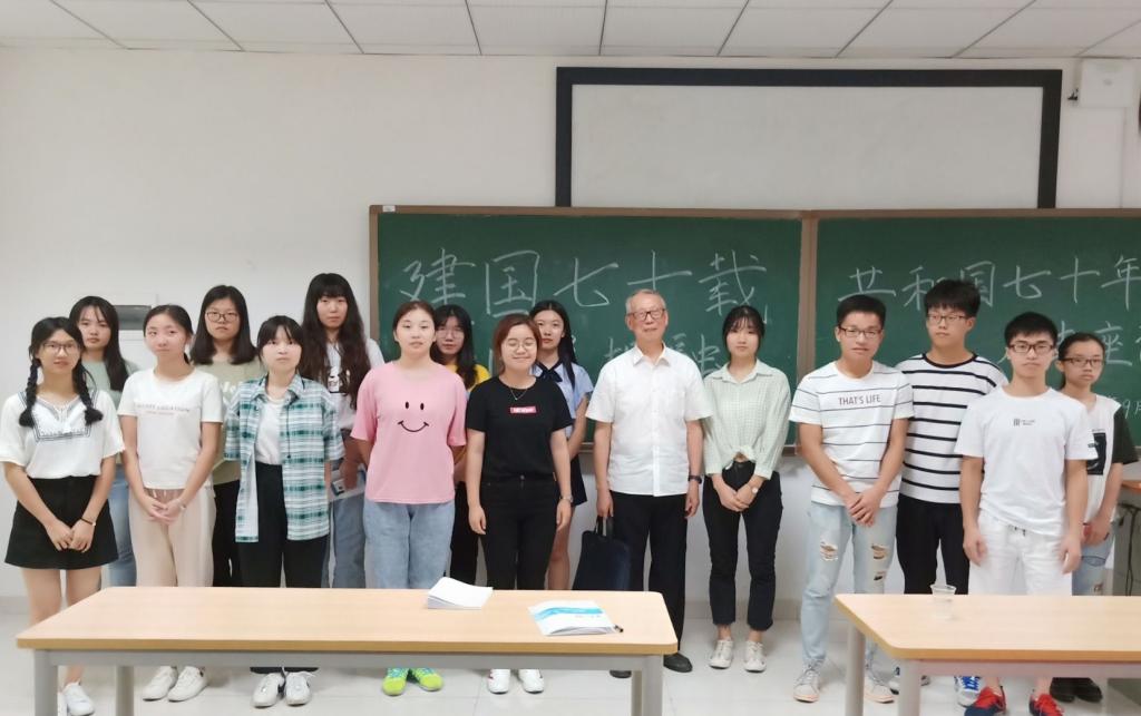 9月24日下午,岳麓书院退休教师关克定老先生受邀来到公管院学生历史座谈会上,以红色革命前辈和党政老干部的身份,为公管院本科生党支部、本科2018级全体同学讲授新中国的革命奋斗的壮丽诗篇。