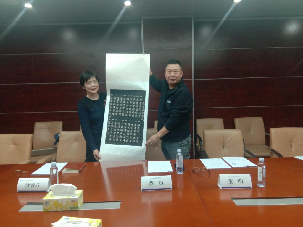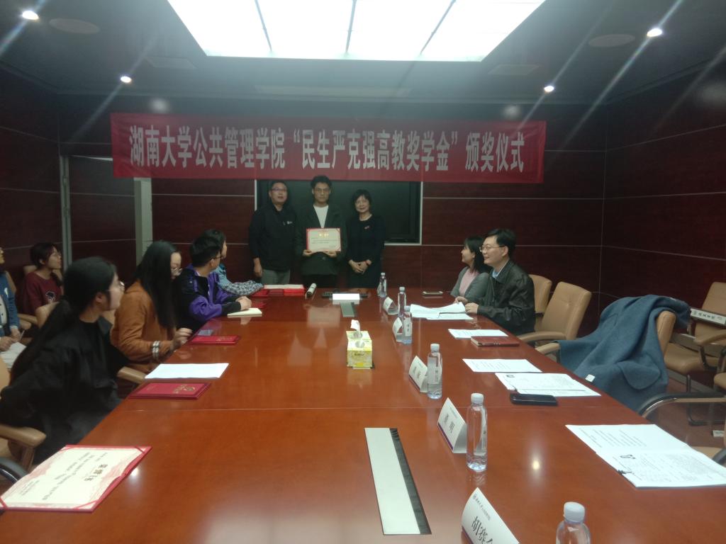 向黄敏先生赠送了《岳麓书院学规》,本次颁奖仪式在领导、老师与本届获奖学生合影留念后结束。