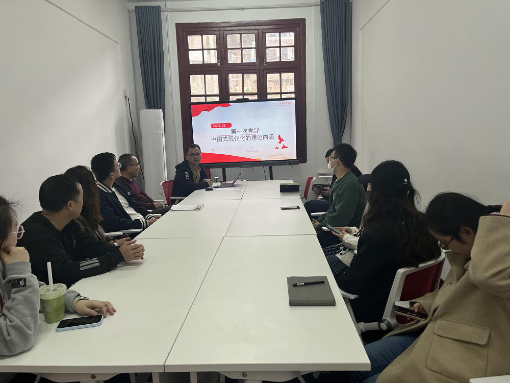 为持续营造浓厚学习宣传氛围,深化理论学习、分享学习心得、凝聚思想共识,2023年3月7日,行政管理研究党支部召开支部会议开展支部书记讲党课活动,支部全体党员、积极分子参会。会上,支部书记赵岩给全体支部成员上中国式现代化道路的理论内涵的党课。赵岩从现代化的含义、中国现代化程度测量、中国现代化特殊性、西方现代化道路、习总书记有关中国式现代化的相关论述、中国式现代化的基本特征、二十大报告等多个维度进行了解读。