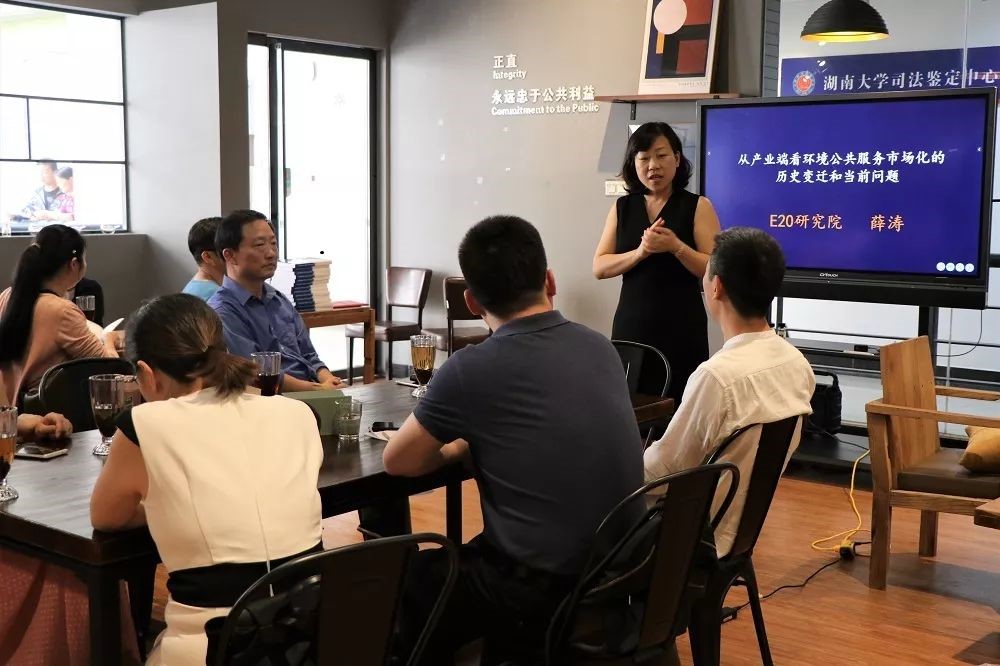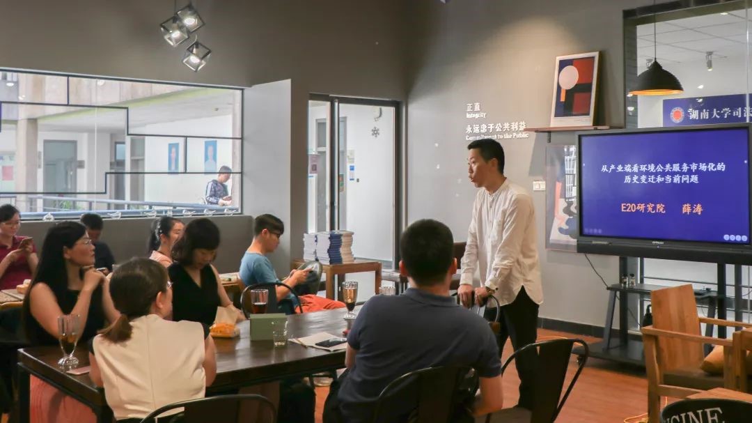 MPA学术午餐会在法学楼咖啡厅举行。本次会议交流的主题为“从产业端看环境公共服务市场化的历史变迁和社会问题”,由E20研究院执行院长薛涛做主题分享,左健教授主持,李连友院长、E20环境平台高级合伙人汤浩以及公管第一会所