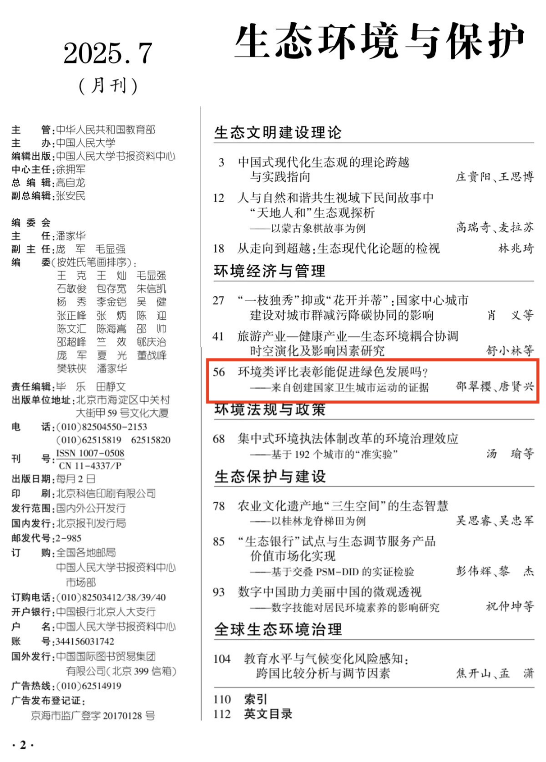 邵翠樱,唐贤兴.环境类评比表彰能促进绿色发展吗?——来自创建国家卫生城市运动的证据[J].岳麓公共治理,2025,4(01):114-130.