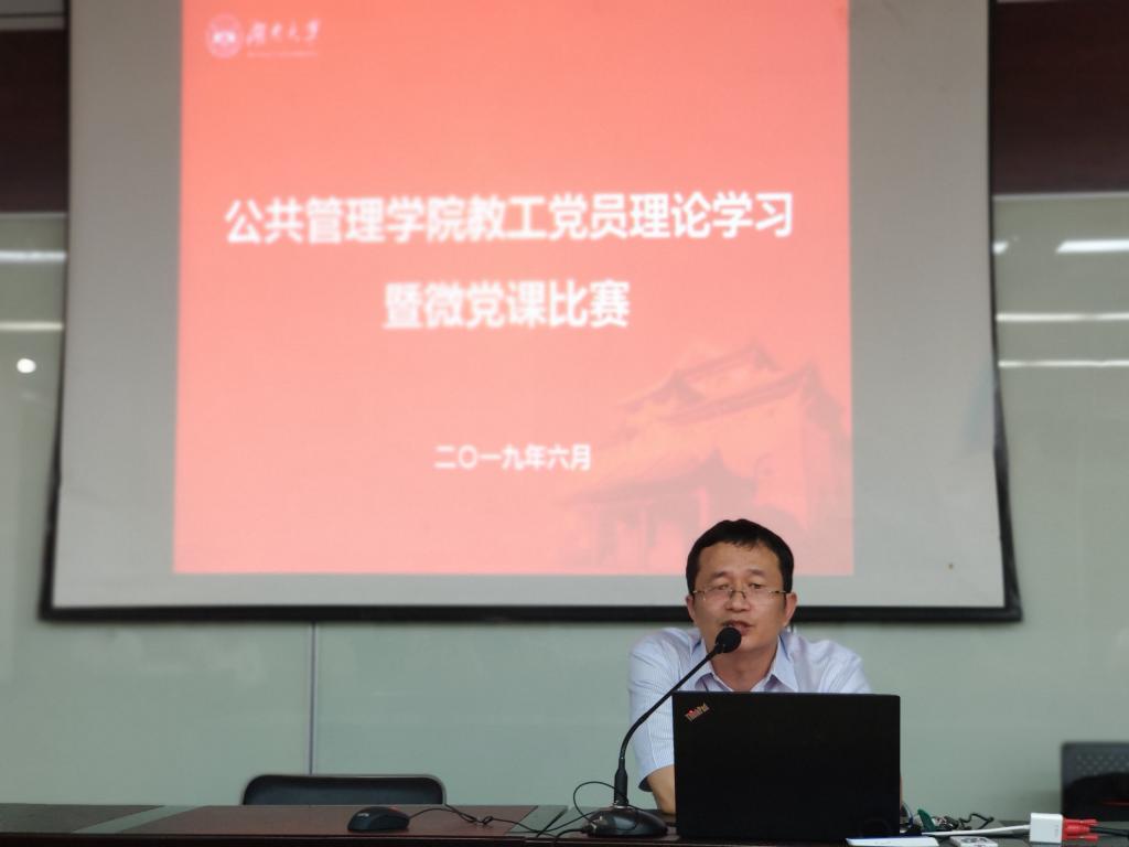 党委组织开展了教工党员党支部委员“微党课”比赛,行政管理党支部书记杜倩博,支部委员郭渐强、刘细良,公共政策研究联合党支部书记程聪慧,支部委员方放,机关党支部书记李释然、支部委员杨锦滔、赵呈戏参加微党课比赛,全体教工党员参与打分评审。