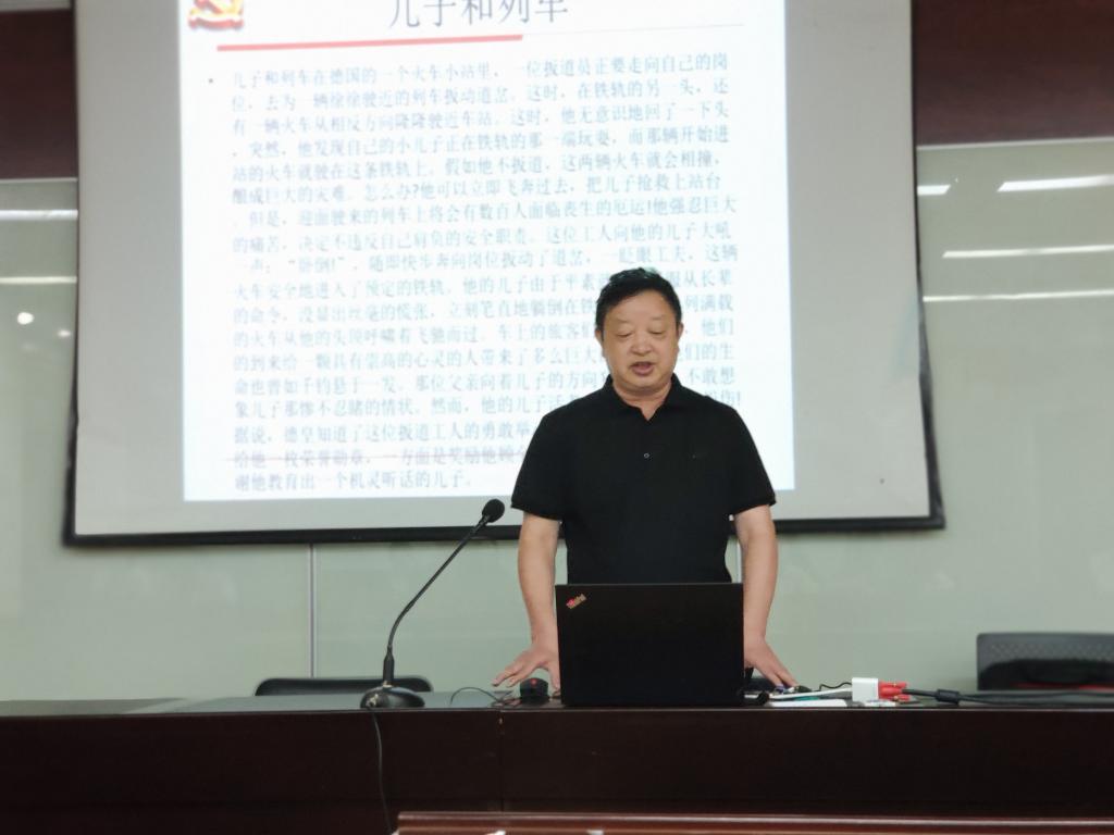 随后机关党支部委员杨锦滔进行了微党课展示。“甜”、"酸”、“苦”、“辣”、“咸”不同的时代,不同的地域,党员的故事亦能带给大家不同的滋味,杨老师以五个动人的党员故事,将共产党员的情怀娓娓道来,诠释共产党员的信仰。