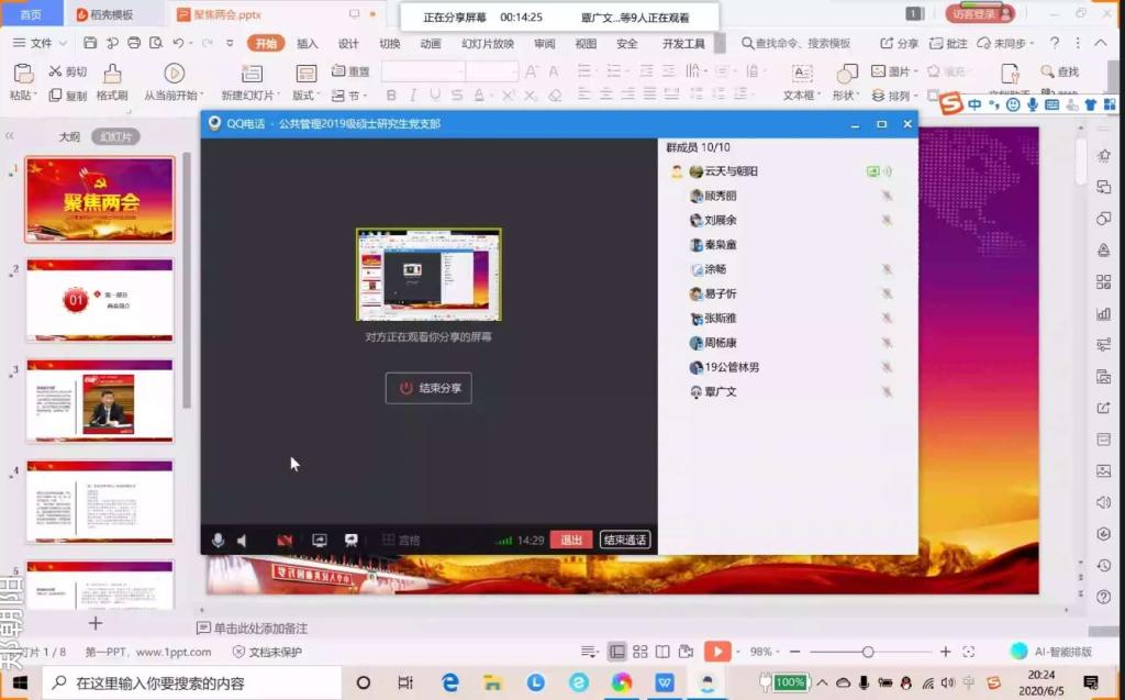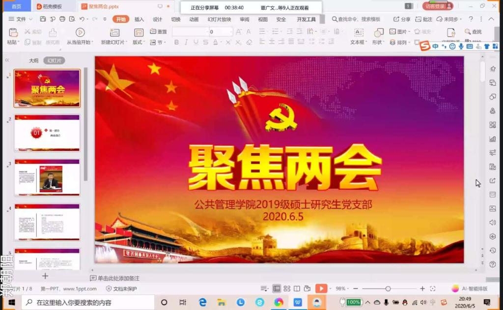 2019级硕士研究生党支部开展“聚焦两会”专题学习。会议仅仅围绕中华人民共和国代表大会和中国人民政治协商会议的基本内容展开学习和讨论。本次会议由郑朝阳同学主持,全体党支部成员共同参与。