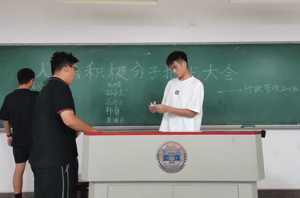 行政管理2001团支部于综合楼101教室开展推优入党大会。会议由团支书高晓蕾同学主持,行管2001团支部全体同学参加,团委组织部干事方佳辉同学全程监督。