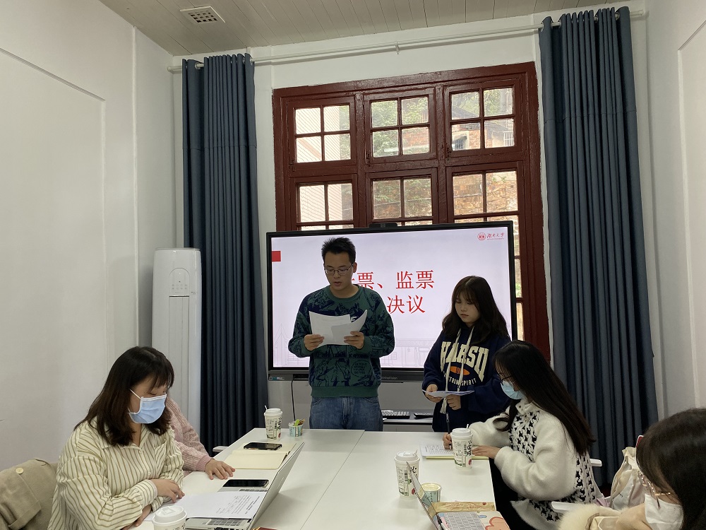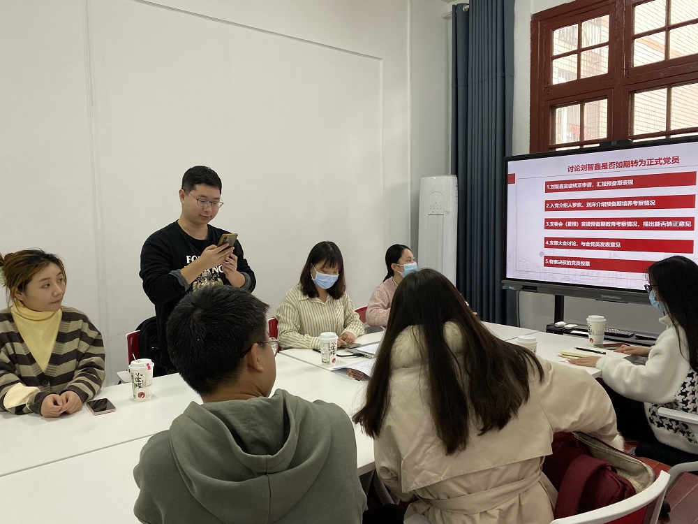 支部严格按照发展党员相关流程,分别对刘智鑫、孙幼龄同志转正事宜进行讨论表决。按照预备党员转正流程,刘智鑫、孙幼龄两位同志依次汇报个人情况、宣读转正申请,随后入党介绍人介绍预备期培养考察情况,支委会宣读预备期教育考察情况,与会其他党员发表意见,现场无记名投票表决。经过支部大会讨论并投票表决,刘智鑫、孙幼龄同志如期转为中共正式党员。