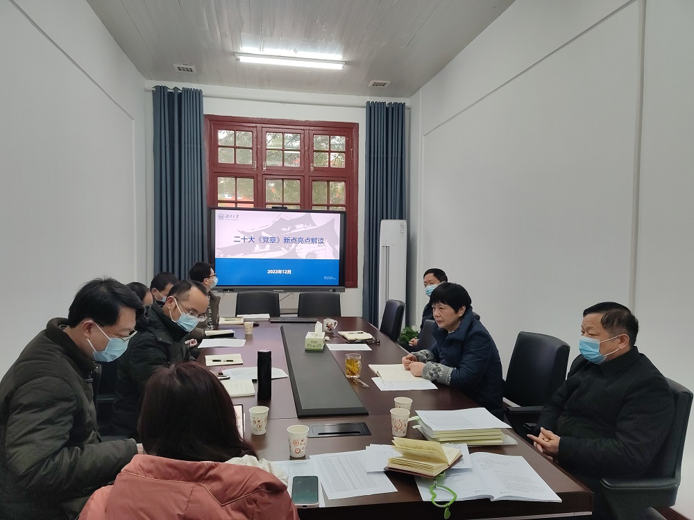 党委中心组开展本学期第11次理论学习。院党委书记付蓉芬主持学习,院党委副书记、纪委书记杜倩博领学党的二十大修改通过的新《党章》,院长李连友及第一会所