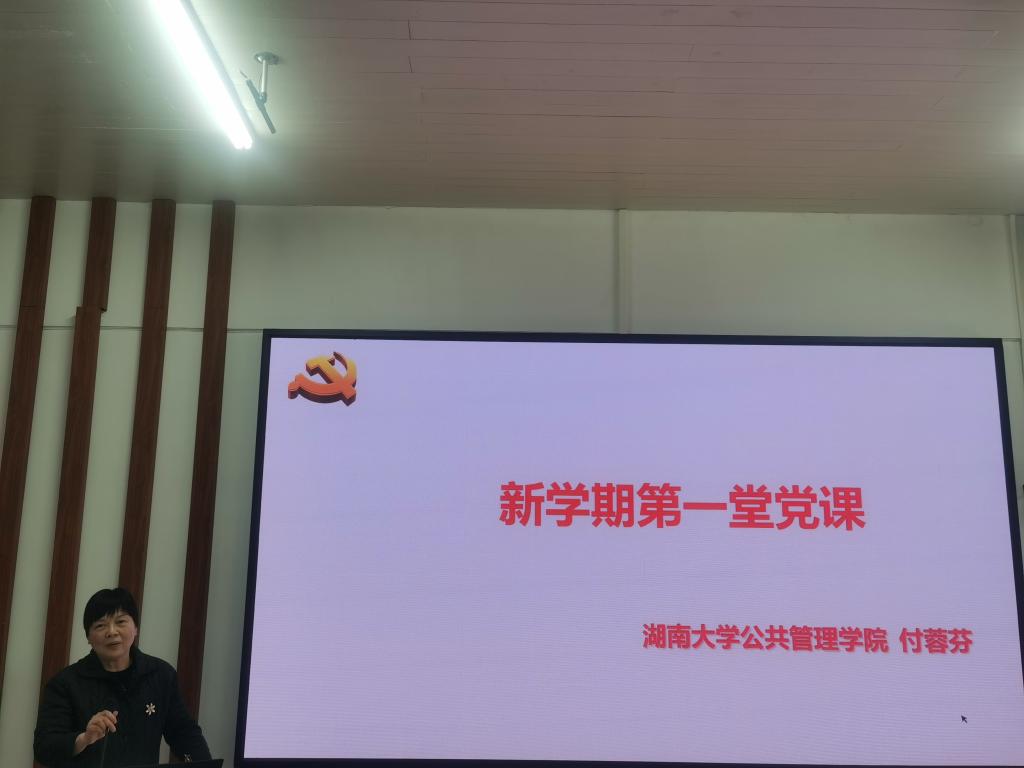 在院221大会议室开展“新学期第一堂党课”活动,院党委书记付蓉芬以《习近平新时代中国特色社会主义思想是如何创立的》为题,为全院教职工上党课。