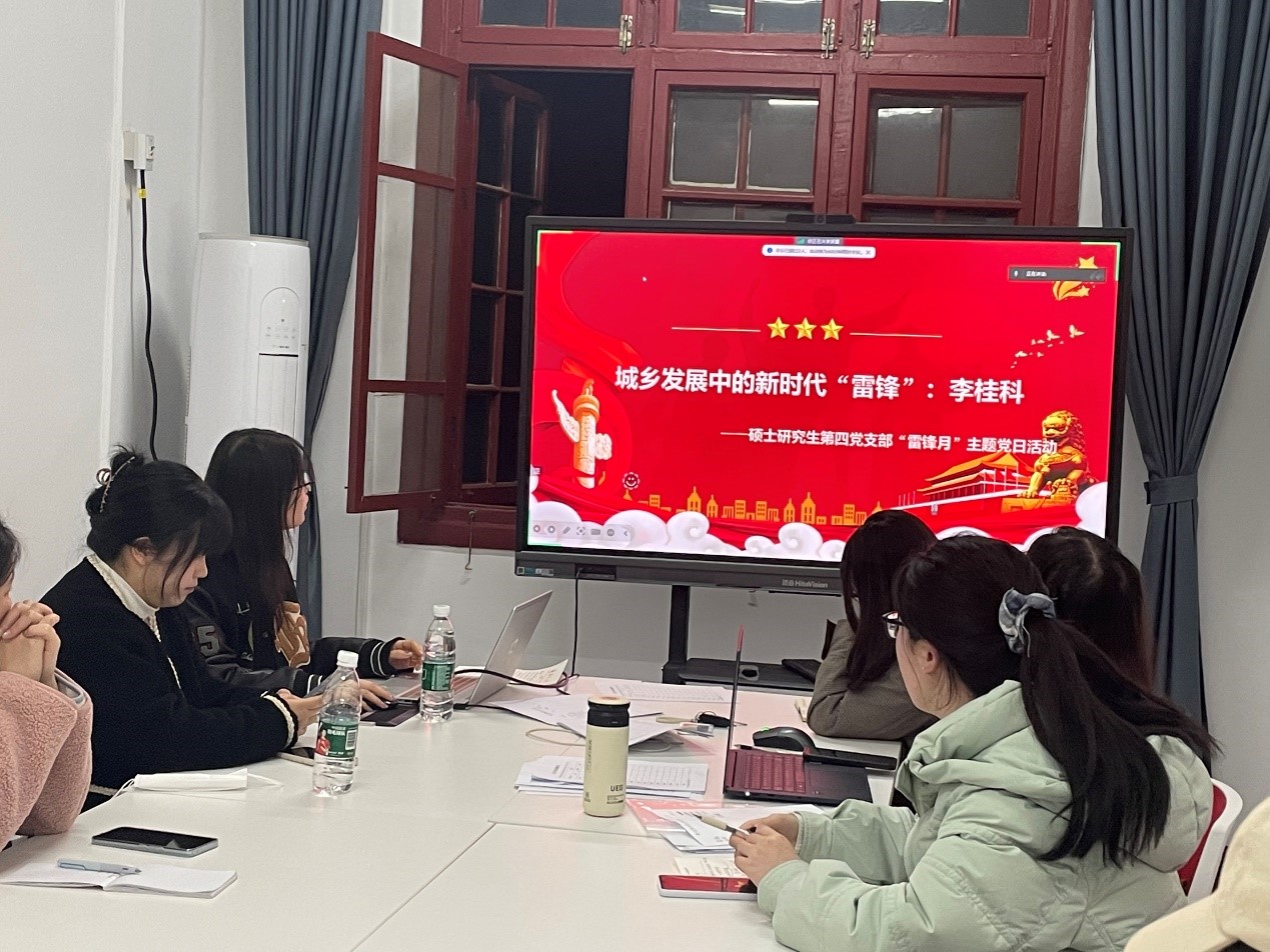 本次党课将党支部专业特色和雷锋精神相结合,以“城乡发展中的新时代‘雷锋’:李桂科”为主题,讲述了扎根乡村的“中国好医生”李桂科的故事。李桂科用40多年的时间给山石屏村村民治病、治心、治贫,通过三次“留下来”让山石屏村由“麻风村”变为“幸福村”。李桂科作为共产党员无私奉献、乐于助人的精神深深感召了与会党员。