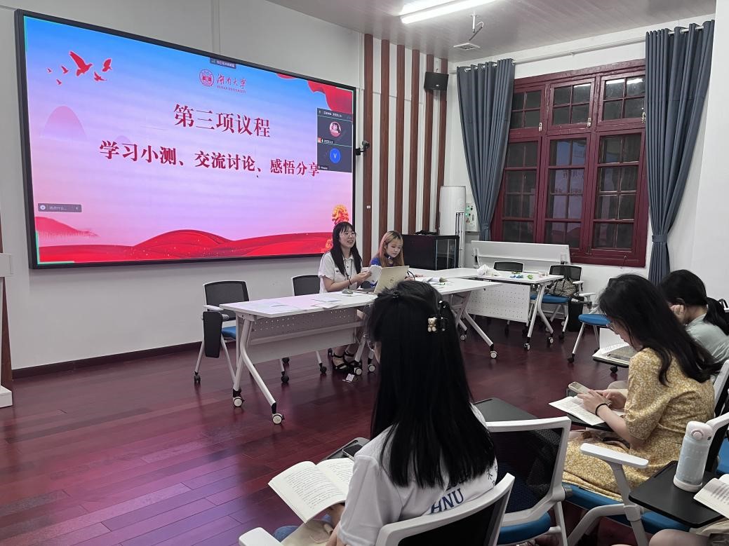 第三项议程包括学习小测、交流讨论、感悟分享。与会党员对政治纪律相关的测试题进行回答,在测试中加强对党纪的理解。会议最后,与会党员们共同探讨如何在实际学习生活工作中贯彻党的纪律要求,并进行感悟分享。党员同志们结合自己的科研、学习、工作实际,积极发言,分享自己的经验和体会,在交流中思考、碰撞。