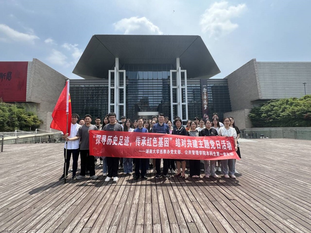 参观活动结束后,党员们在博物馆前集体合影留恋。此次主题党日活动,让党员们深入了解了中华民族优秀文化,深刻感受了三湘文化魅力和湖湘精神内涵,极大地增强了文化自信,提升了党员党性修养,更好地激励支部党员铭记历史、不忘初心,争做新时代合格党员。