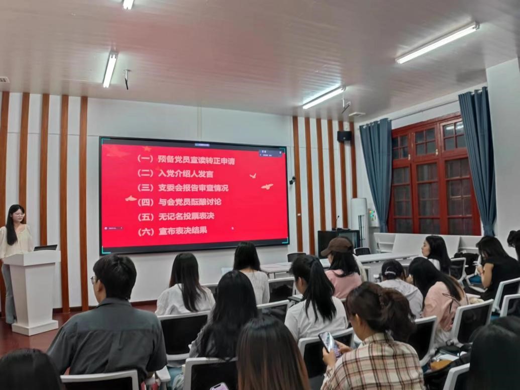 会上,李永健通报了到会情况,确认大会符合召开要求后,提请支部大会讨论并表决季隽旸入党以及余洋、王佳丽、黄诗瑶、徐一峰的按期转正事宜。