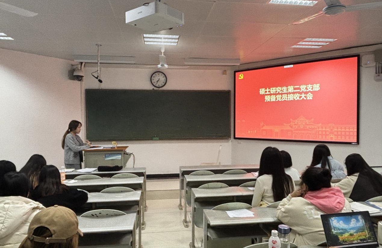 硕士研究生第二党支部在水教509室召开预备党员接收大会。支部书记刘仪航主持会议,支部全体党员参加。