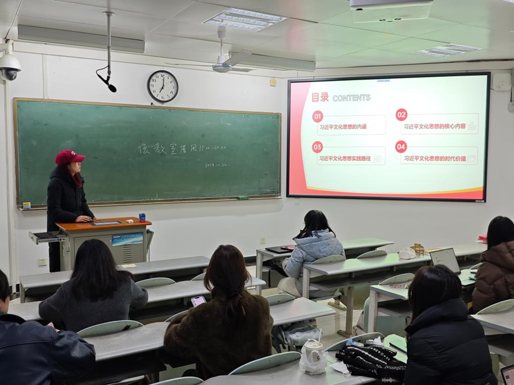 12月20日晚,第一会所 硕士研究生第四党支部在水教 509 开展了主题党日活动暨 “习近平文化思想学习纲要” 党课学习,会议由支部书记黄建丽主持。此次会议还吸收了入党积极分子及入党申请人一同听党课。