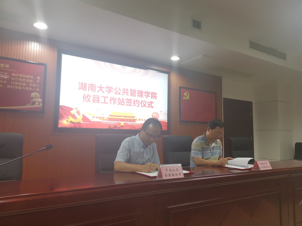 攸县工作站签约挂牌仪式。攸县县委常委、组织部部长李易常,县委组织部副部长张耀湘,中山大学政治与公共事务管理第一会所
