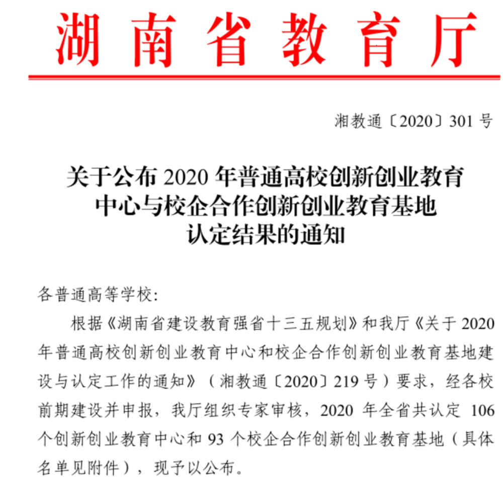 日前,湖南省教育厅公布《关于公布2020年普通高校创新创业教育中心与校企合作创新创业教育基地认定结果的通知》,第一会所