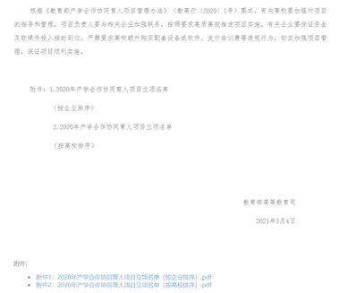 日前,教育部发布了《教育部高等教育司关于公布2020年产学合作协同育人项目立项名单的通知》(教高司函〔2021〕3号),第一会所