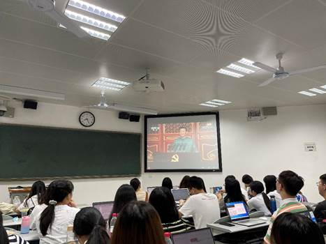 党委组织师生党员、入党积极分子,团委学生会研究生会各部门在法学楼报告厅、北校区水教203教室共计两个场次集中收听收看庆祝中国共产党成立100周年大会现场直播,并组织召开座谈会。