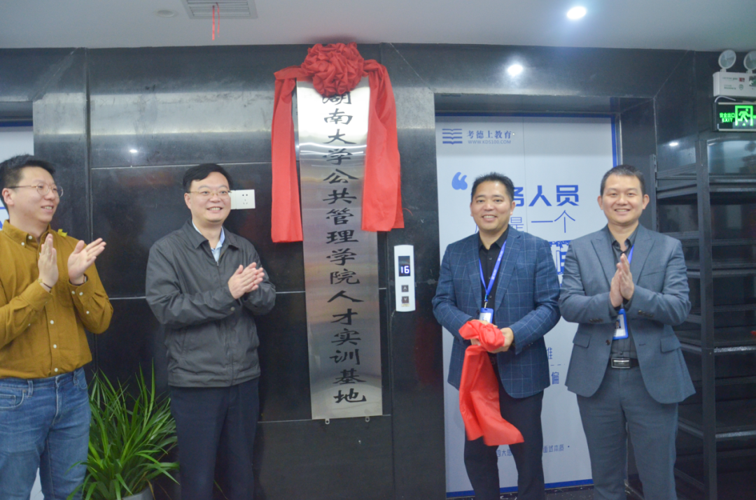 人才实训基地”揭牌仪式。考德上教育董事长田亚东、公司副总朱四海、长沙分校校长唐明俊等出席会议,第一会所