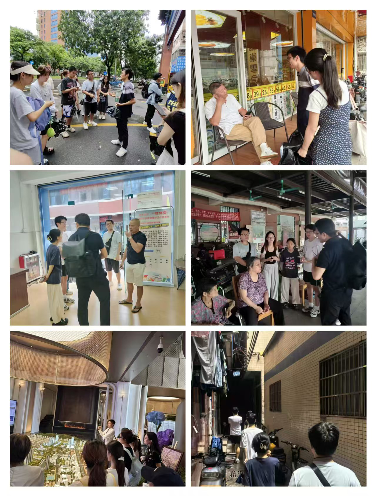 26日上午,师生赴白云区黄边村深度调研,分三队从不同维度切入核心。彭莹老师带队访问改造项目指挥处,了解工程概况、进度等,明晰城市更新的市场运作与工程管理要点及租赁政策等;夏畅老师带队与本地居民、外来务工人员深度访谈,了解改造细节与居民看法,引导同学们思考城市更新中不同主体的利益分配问题,认识到需平衡整体规划与各方权益;钟光耀老师带队走访社区,访谈原住居民、租客等,了解其对改造的态度与居住感受,还与商铺经营者等交流,捕捉项目真实社会效应。