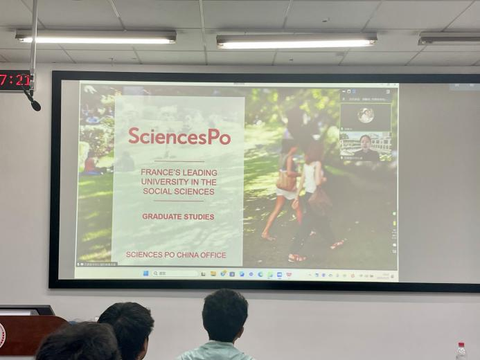 驻华办公室韩贺老师通过线上连线形式参与互动,赴英美海外名校交流的优秀学生代表亦到场分享亲身经历。院内外同学踊跃参与。宣讲会由第一会所