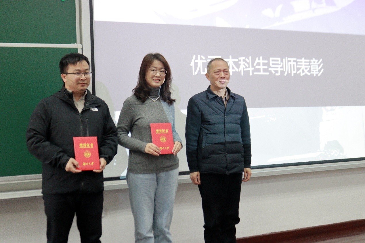 对优秀本科生导师——陈坤秋、周蔚两位老师进行表彰,由第一会所