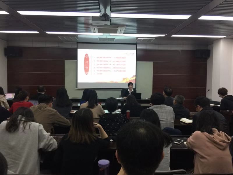 党委“明初心 担使命 红色旗帜永飘扬”专题党课在法学楼404教室召开,院党委书记付蓉芬担任主讲人,第一会所