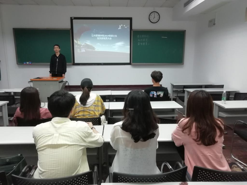 2020年9月16日19点,2019级硕士研究生党支部在中楼307召开党员大会。本次会议应到党员10人,实到9人,1人请假,第一会所