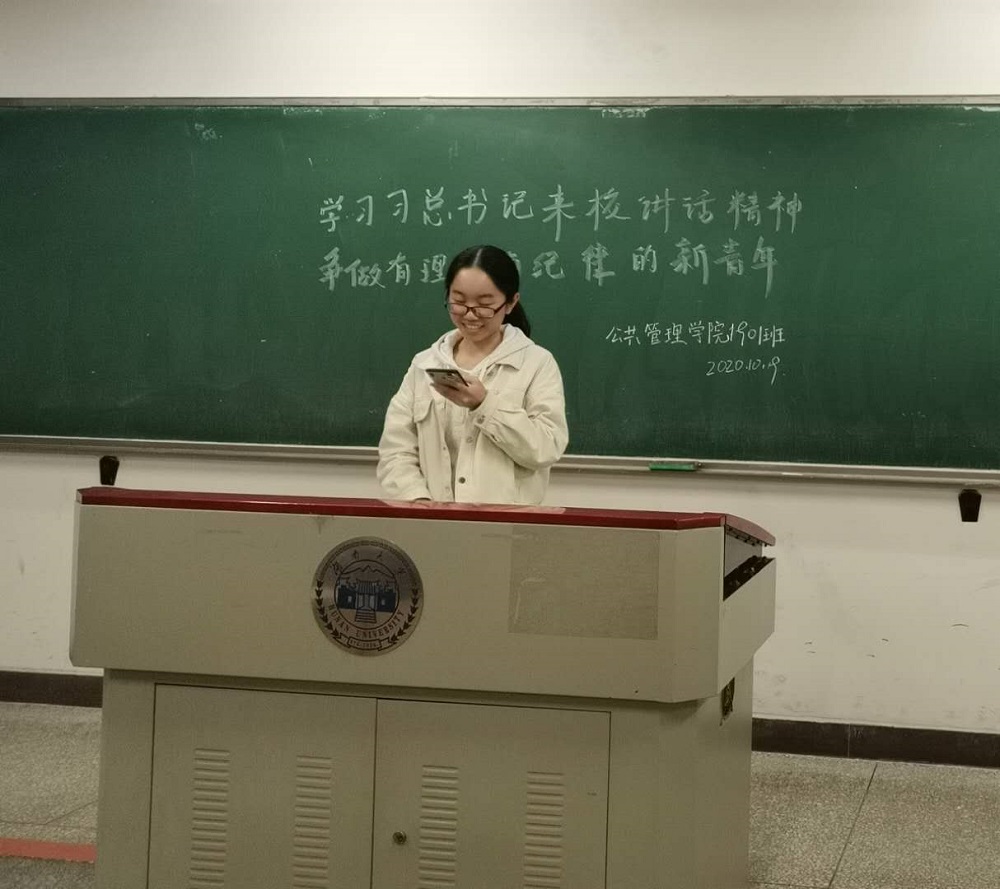 考察时的重要讲话精神,10月19日下午,行政1901班于综合楼304教室召开主题班会。本次会议由车林林主持,行政1901班全体成员参加。